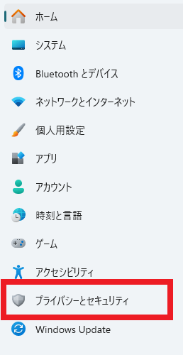 「プライバシーとセキュリティ」を選択します。